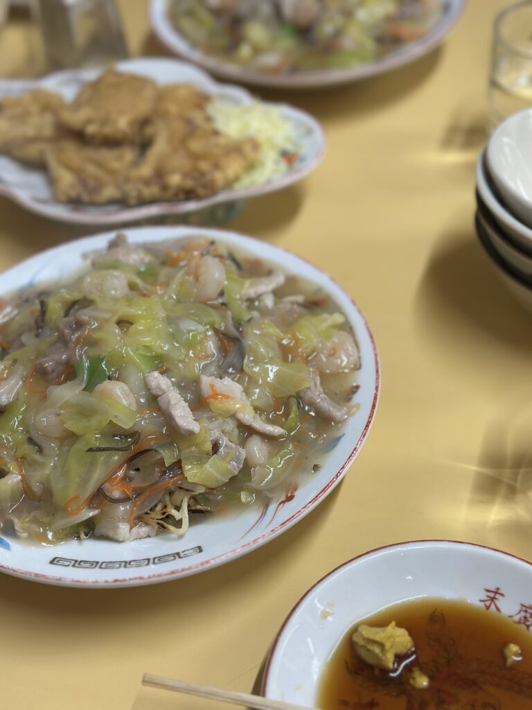 豚天に酢豚(徳島で一番美味しいです。)そして名物とも言えるのが上海炒麺(平たく言えば八宝菜が掛かった