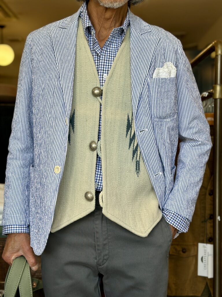フィレンツェのEAST HARBOUR SURPLUSにシアサッカー生地で別注しましたフレンチ香るジャケットなどに