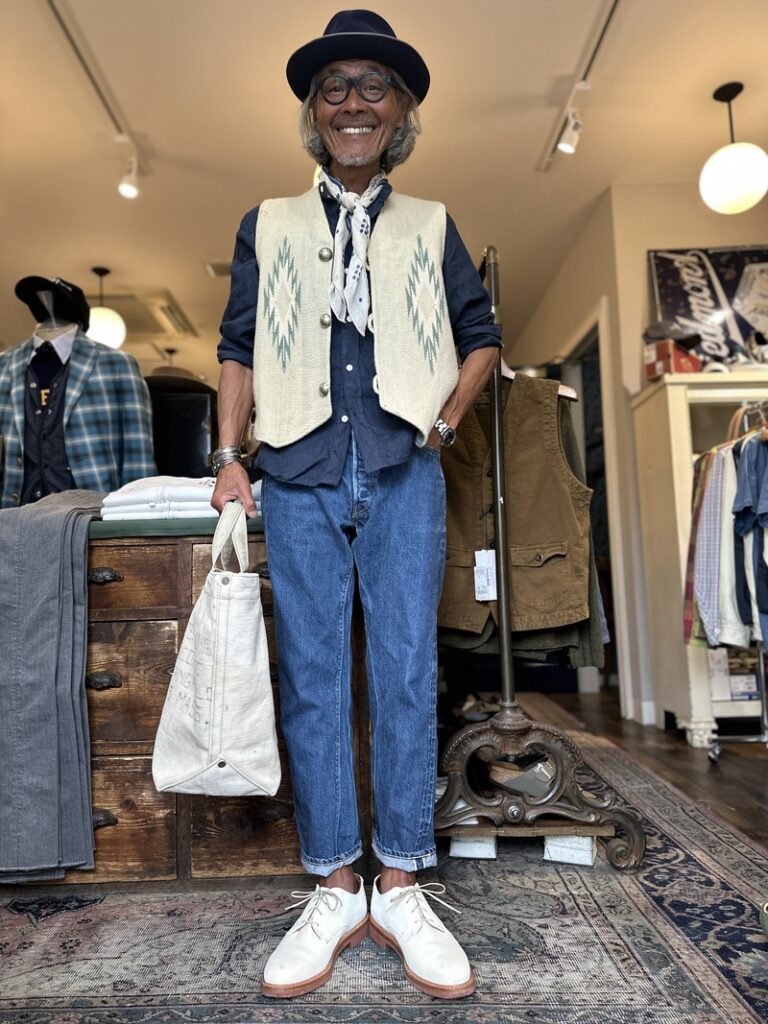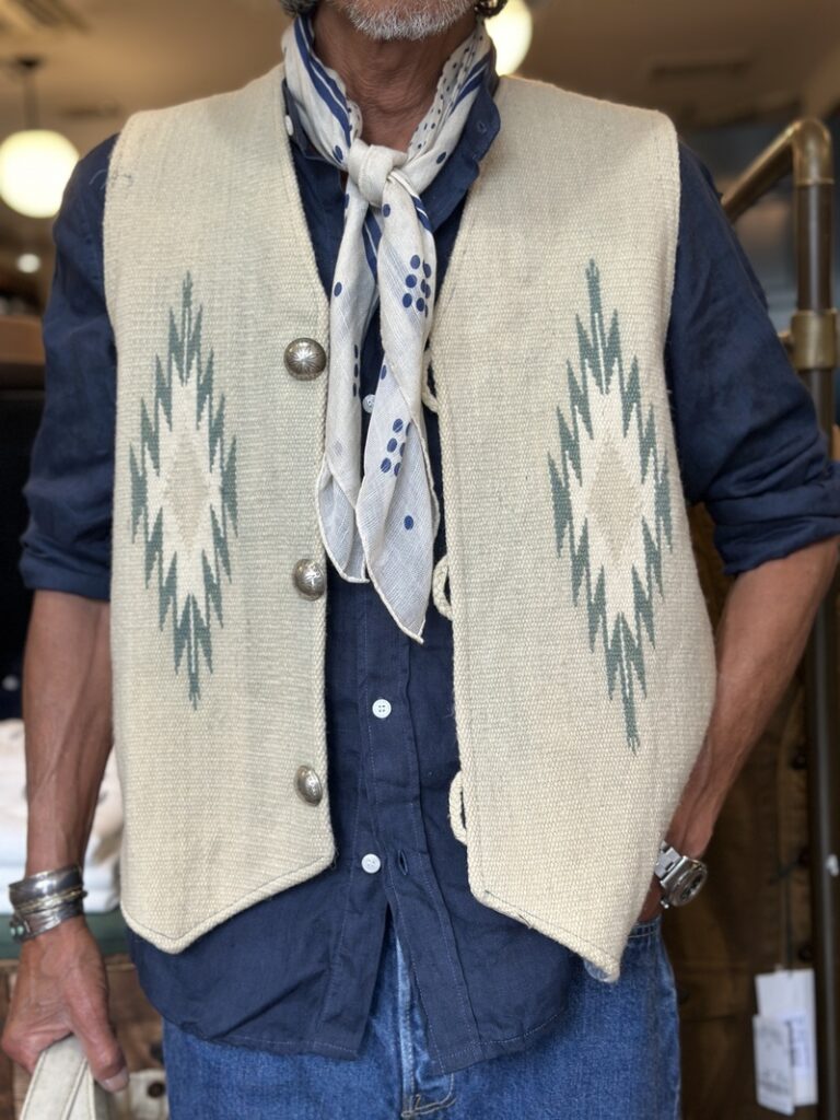 Trujillosに別注しましたラグベストなどにVincenzo miozzaのスカーフなどで熟れ感を!