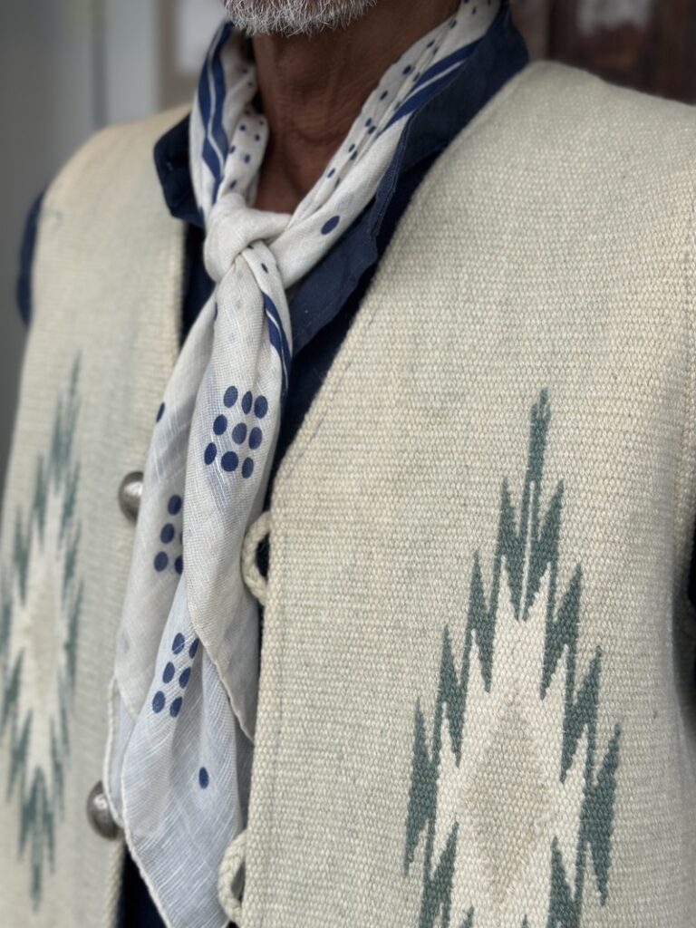 I commissioned a rug vest from Trujillos and added a Vincenzo Miozza scarf for a sophisticated look!