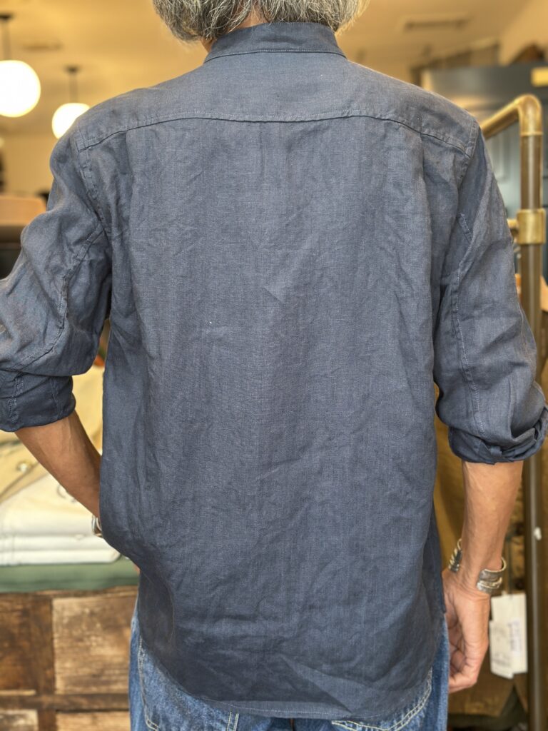 素材をスペインの麻(100%)で企画しましたのでミリタリーウェアーの雰囲気も払拭させておりまして