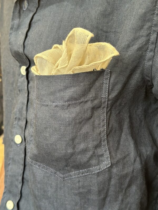 胸ポケットなのでスカーフなど首元から外された際、チーフ代わりに如何でしょう!