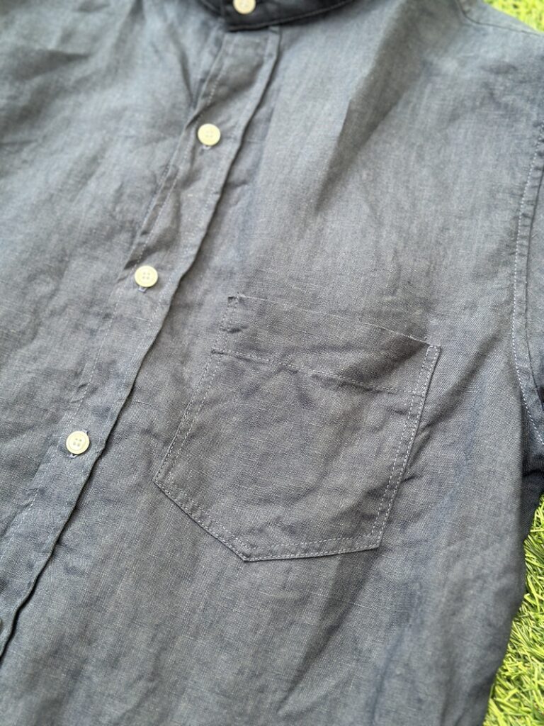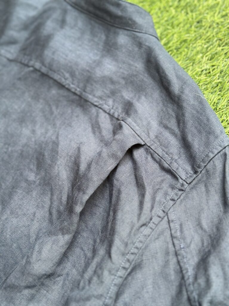 Below the yoke, there are side pleats, a detail characteristic of work shirts and military shirts.