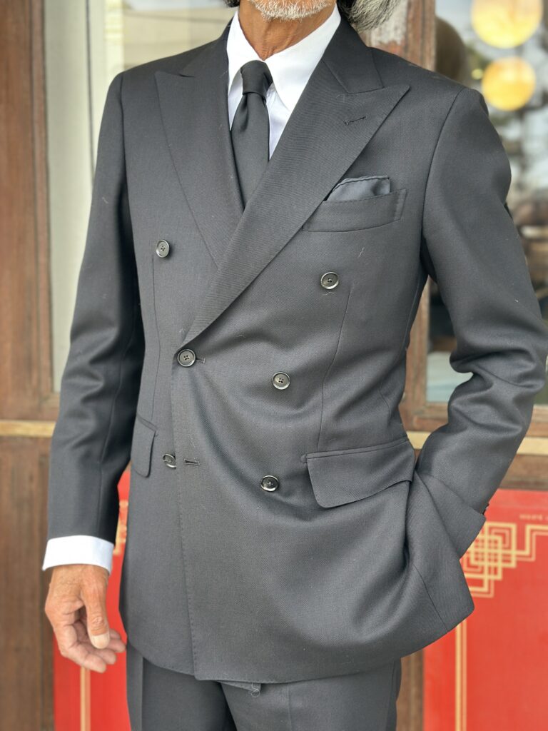 ダブルも今のダブルはナチュラルな肩からお襟に沿って綺麗に登っており、とても柔らかいムードを