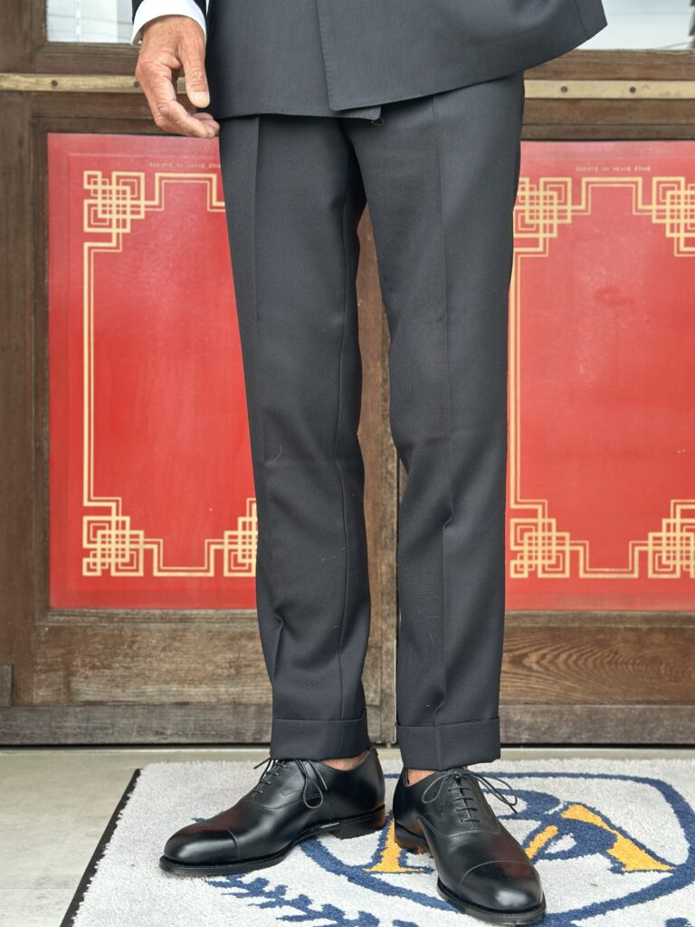トラウザーズもクッションが入らない程度にが美しいと思います。
