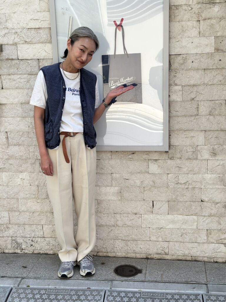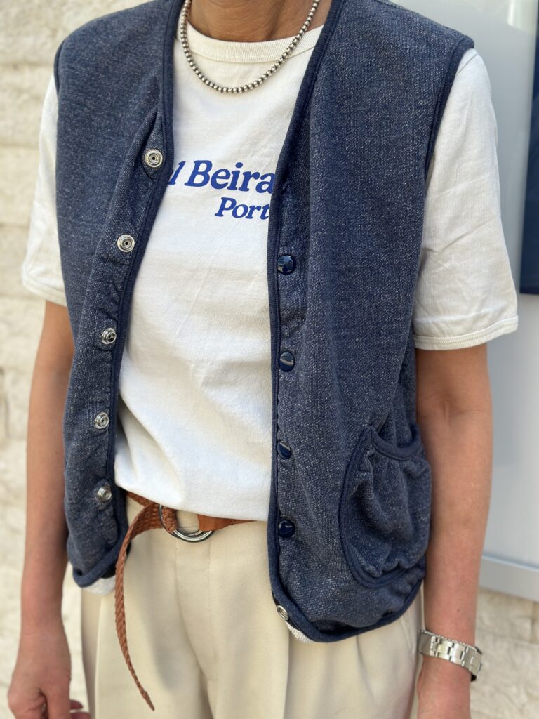 女将も最終日はインディゴスウェットベストを、