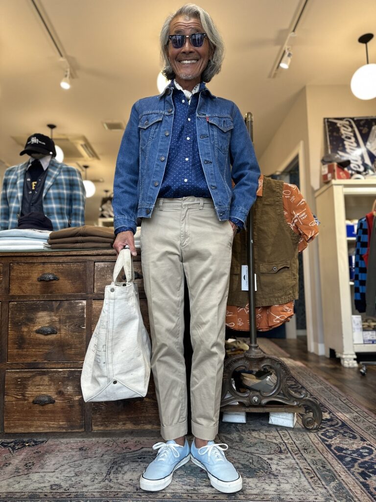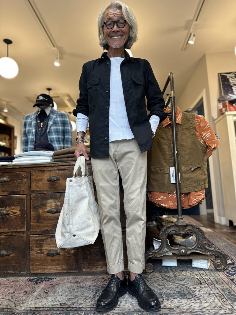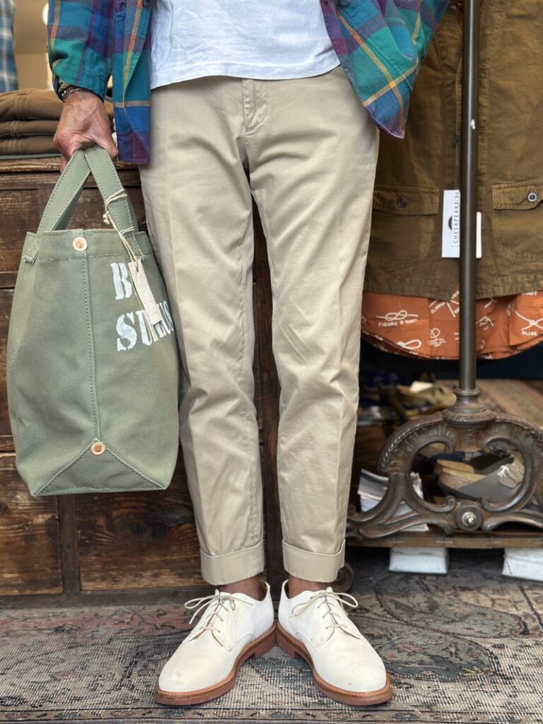 装いもチノパンになりますので変幻自在の着熟しをお楽しみ頂けます。