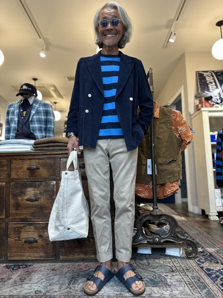 夏場に重宝致しますD.C.Whiteのパイル素材のネイビージャケットなどの装いにも如何でしょう。