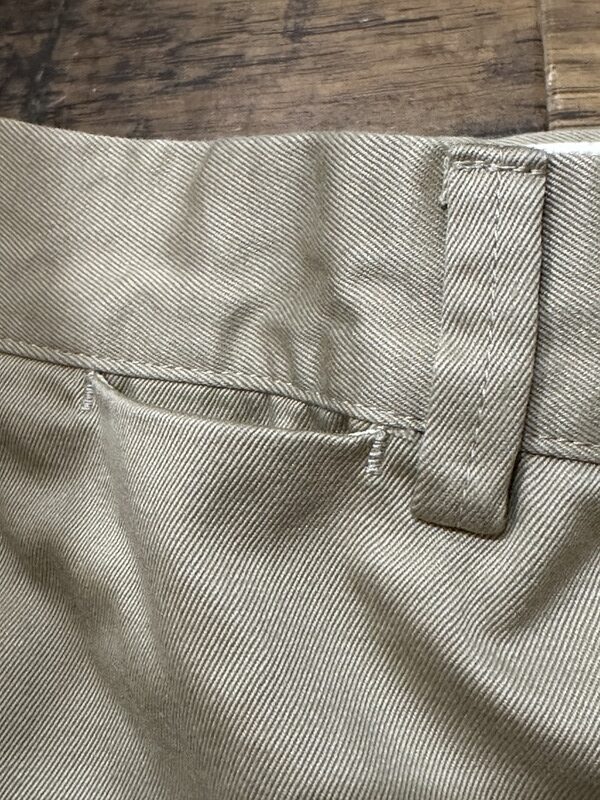通常のチノパンより細い糸を強い打ち込みで織り上げましたチノクロスになります。