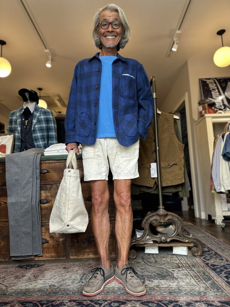 ボーイズマーケット別注コットンヘリンボーンのバミューダショーツにも良くお似合いになりますね。