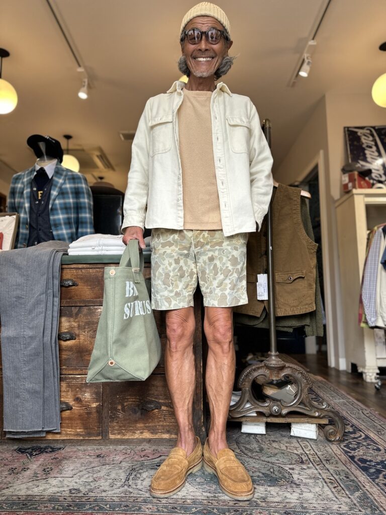ボーイズマーケット別注ハンターカモのバミューダショーツなどにジャランスリワヤにタバコスウェードで