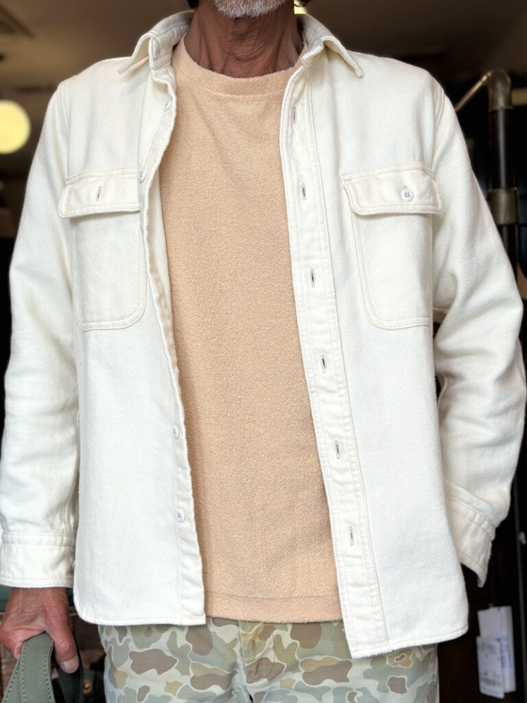 同じデザインで素材の置き換えで企画しましたボーイズマーケット別注コットンシャモアシャツ