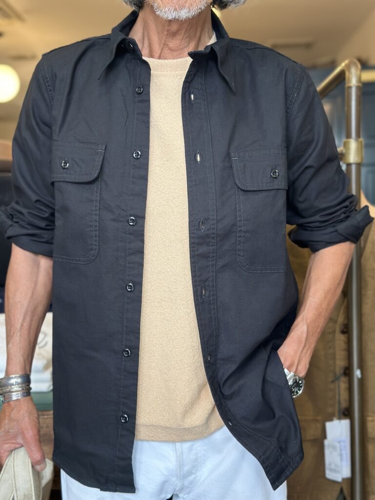 米軍のオフィサーシャツに使用されますミリタリーポプリンで企画しましたワークシャツなどにも