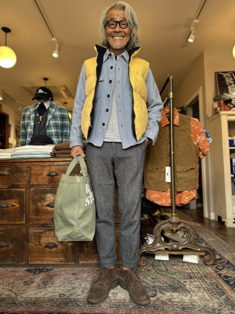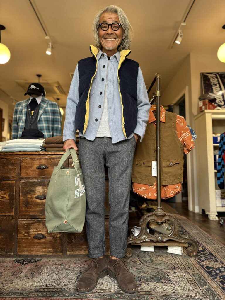足元Trickersに別注しておりますデザートブーツは本当に良くお似合いになりますね。