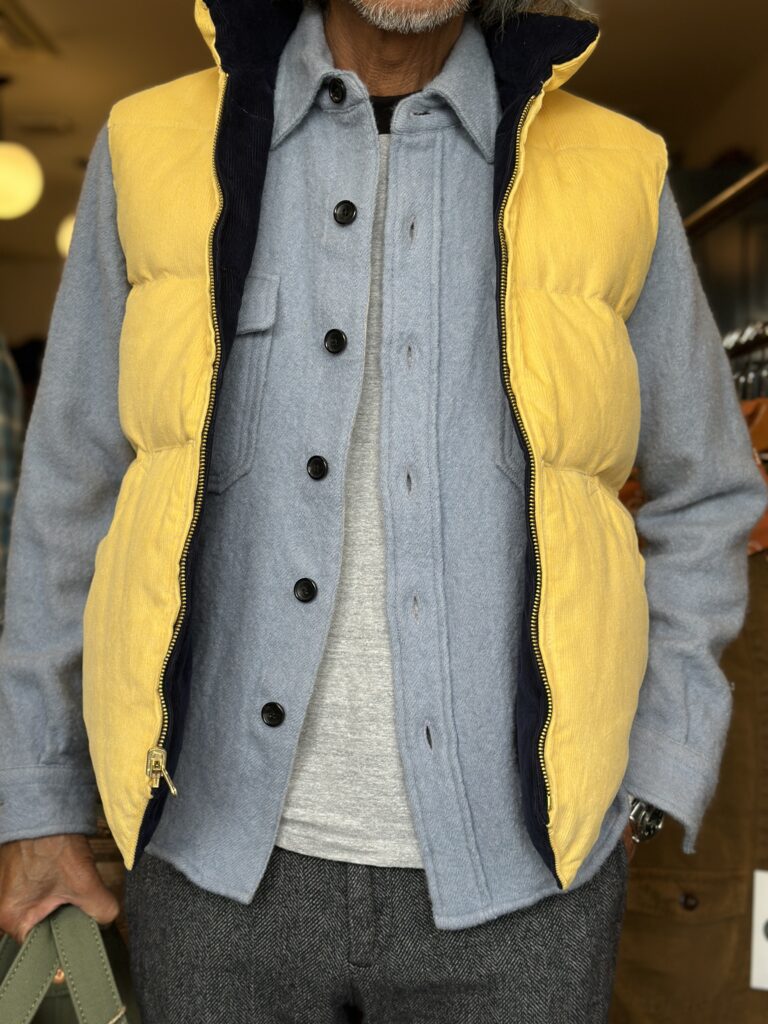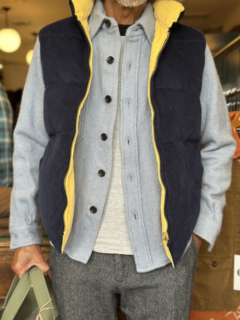 ひっくり返して綺麗なバターイエローのコーデュロィもサックスブルーに良く映えますね。
