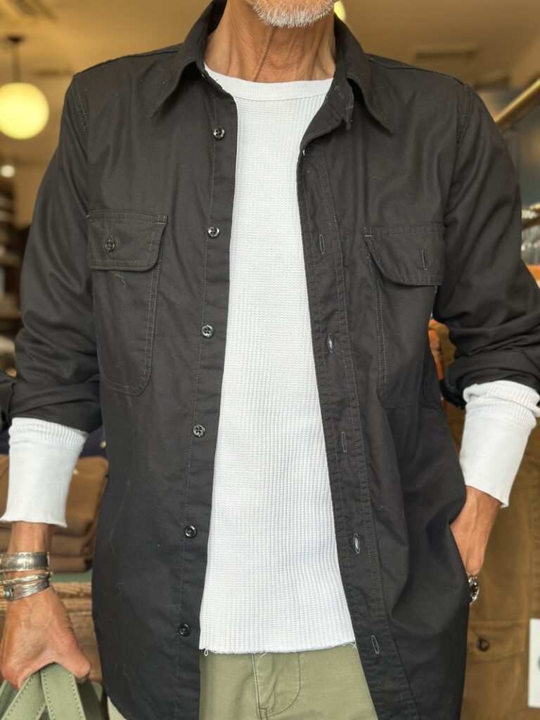 日々愛用しておりますミリタリーポプリンで企画しましたワークシャツのご紹介になります。