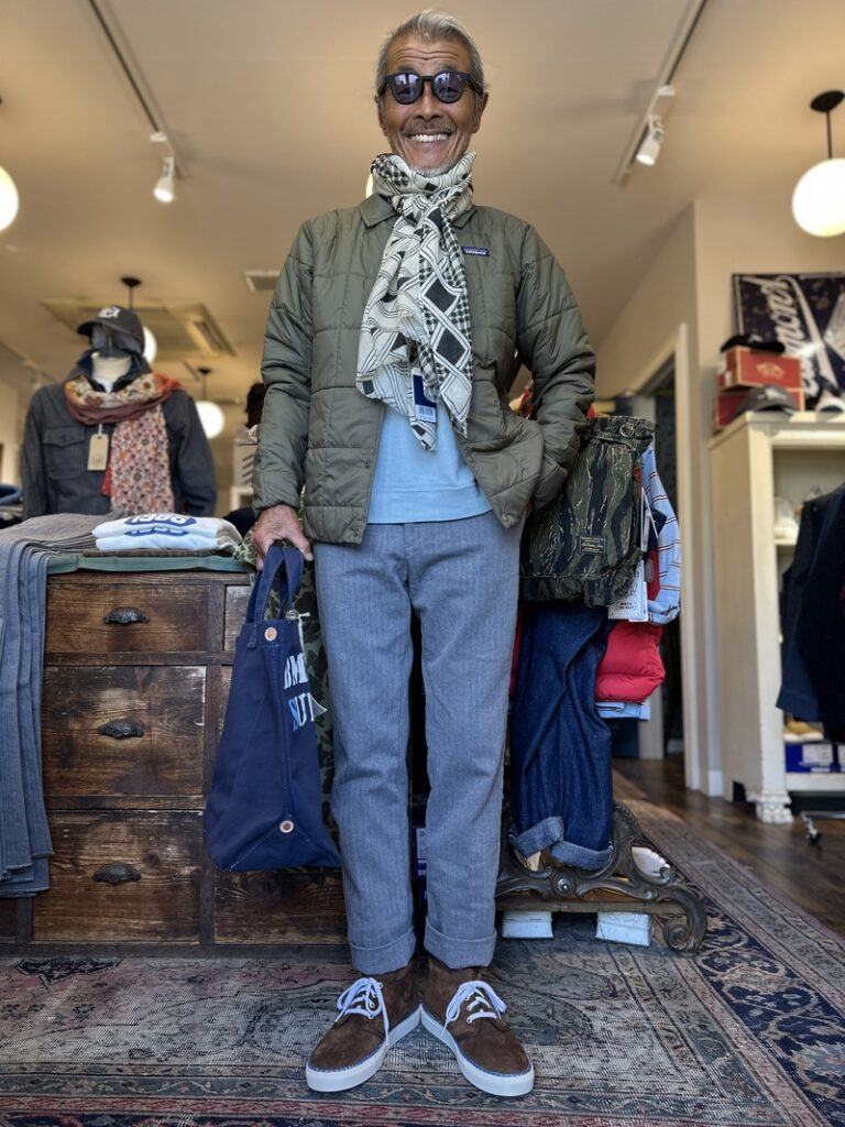 ボーイズマーケット別注60年代ヴィンテージスウェットにパタゴニアの中綿入りコーチジャケット