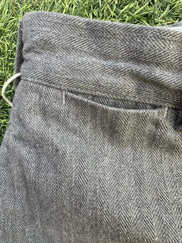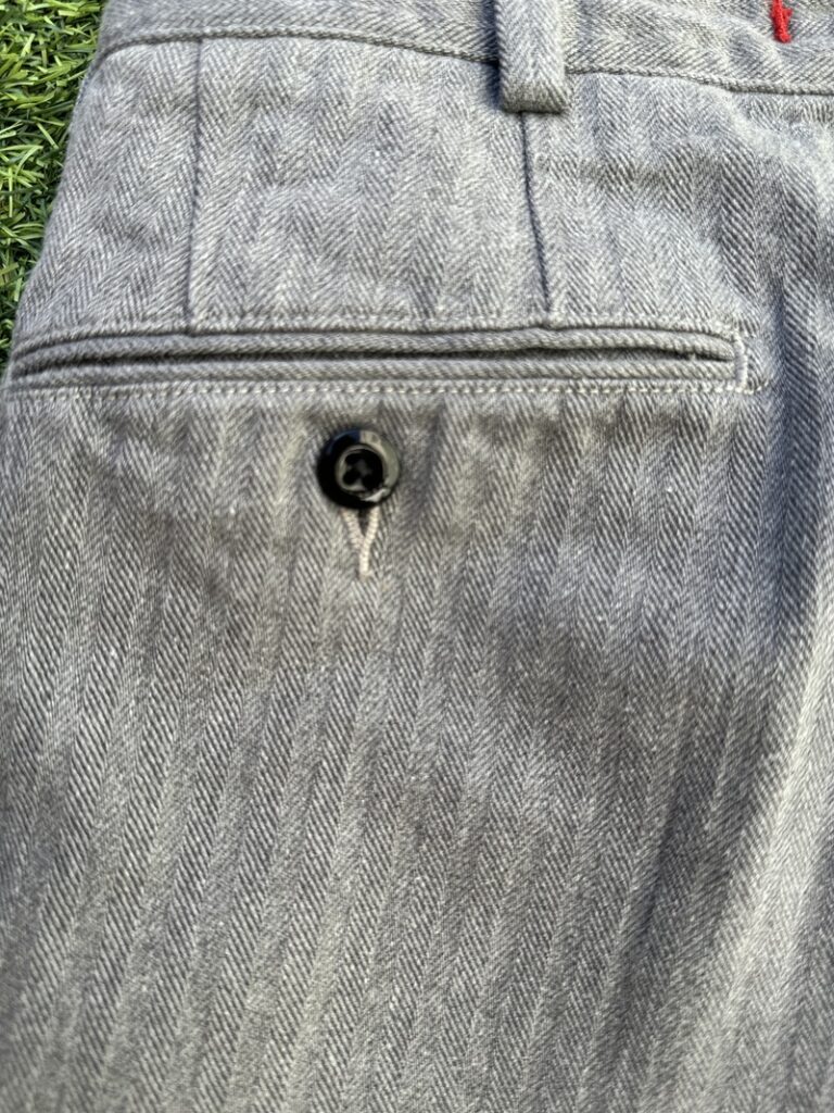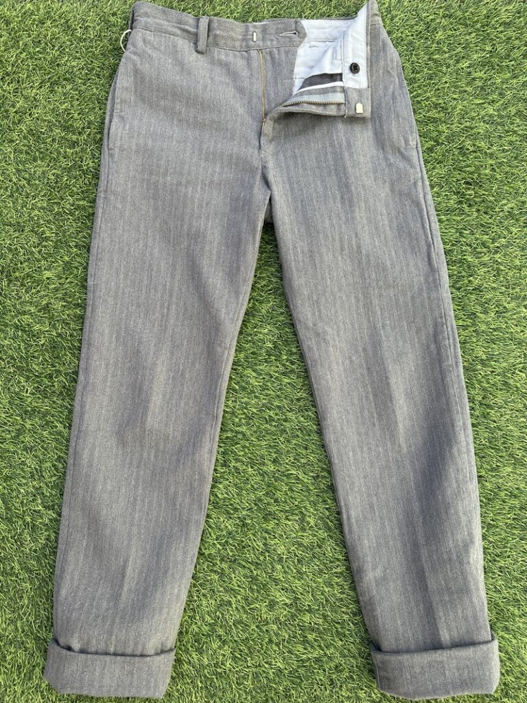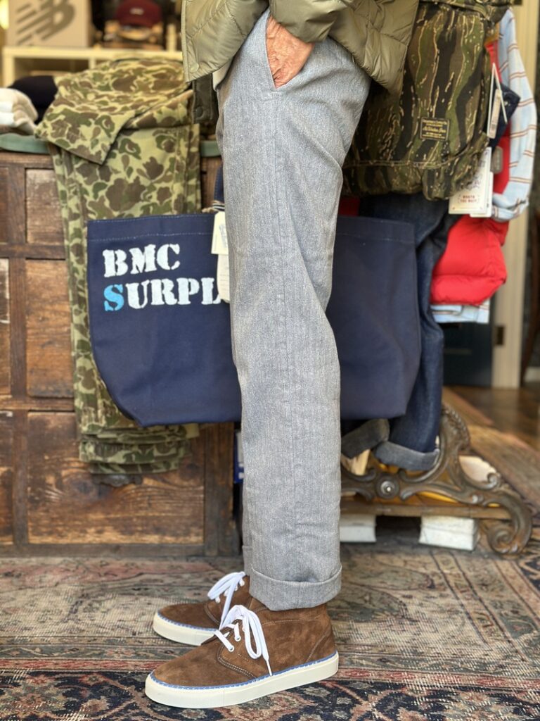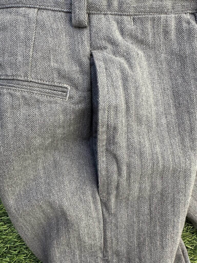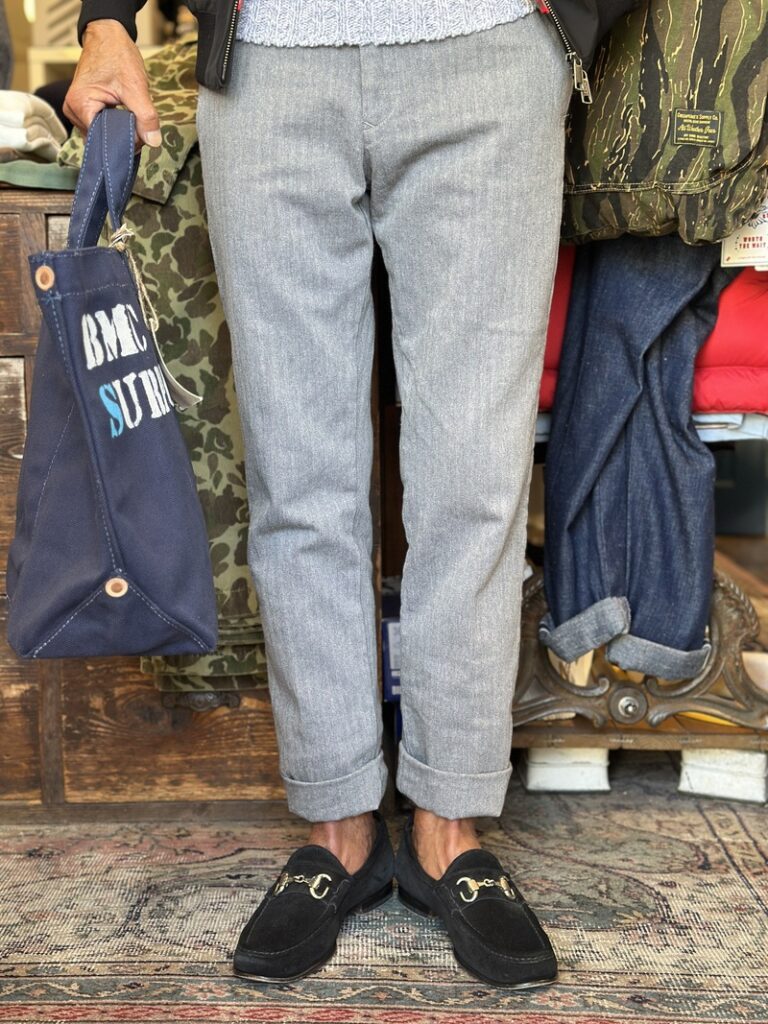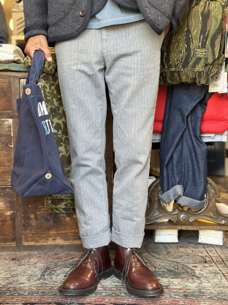 肉厚のコットンヘリンボーンを使用致しましたトラウザーズになりましてお色もミドルグレーと