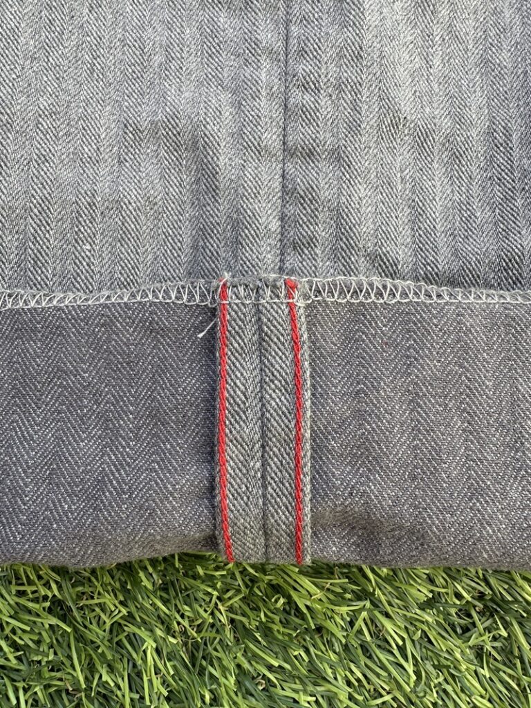 The red selvedge is created with machine stitching, which creates a nice worn-in feel when washing and drying.