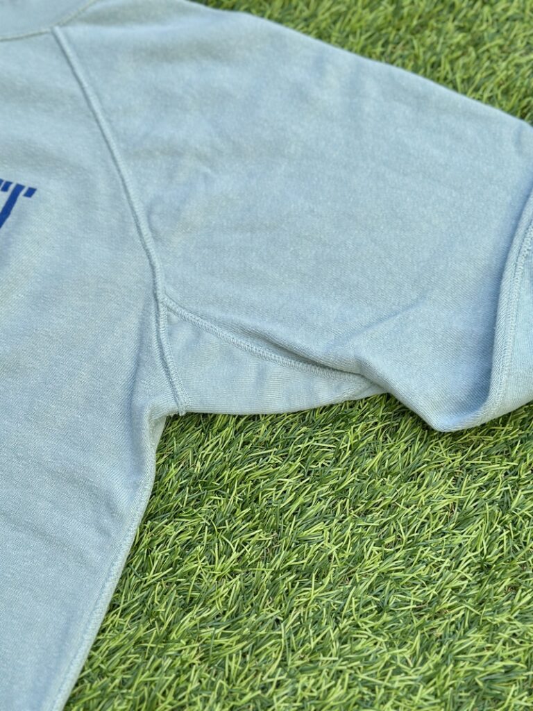 末っ子は、僕のヴィンテージの半袖スウェットの色褪せましたサックスブルーを参考にして作った一枚!