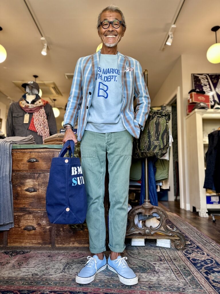 サックスブルーにはボーイズ別注ベーカーパンツが良くお似合いになりますね。