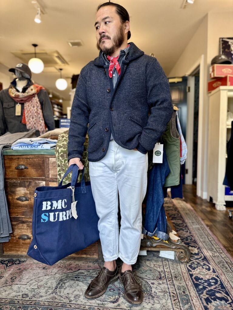 此の手合いの装いならボーイズ別注ホワイトデニムなど良くお似合いになりますね。