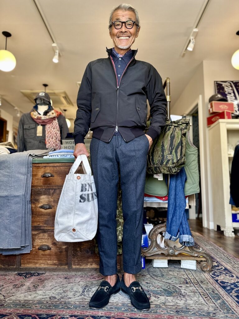 足元、YUKETENにブラックスウェードで別注しましたビットモカシンなどお勧めですね。