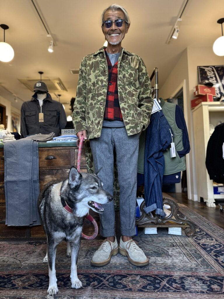 felcoに鹿子素材で企画しましたヘンリーネックT-SHなどにFILSONのマッキノーベストなどのコーディネィト