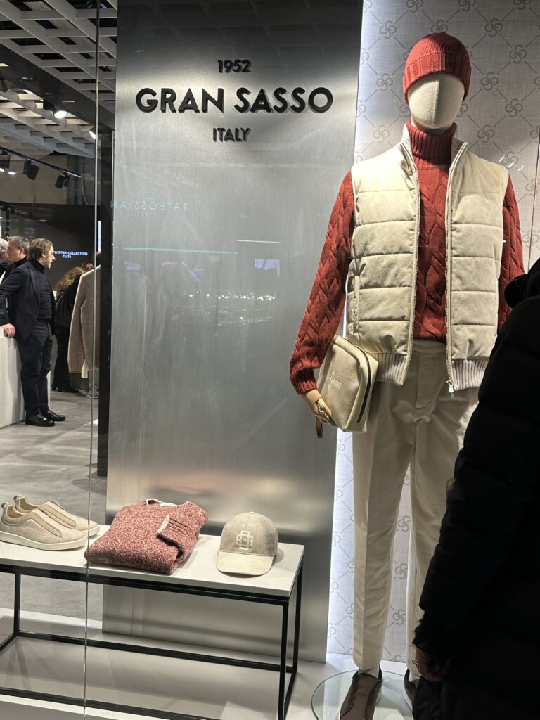 This is the GRANSASSO booth at Pitti UOMO.