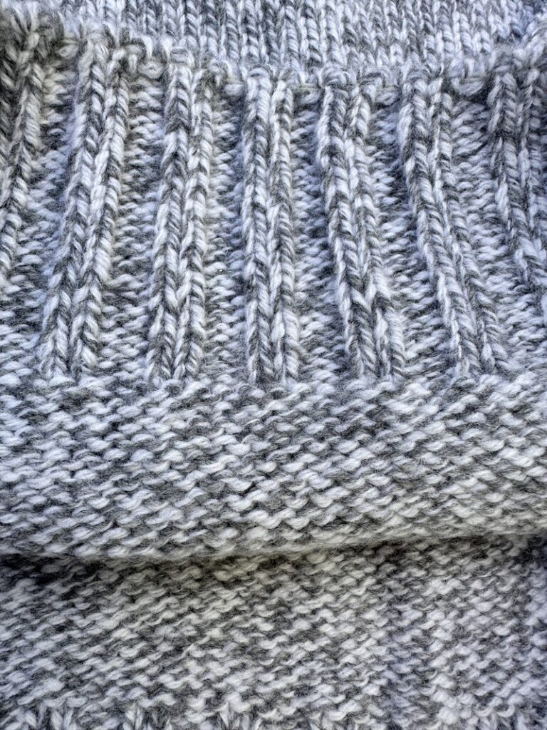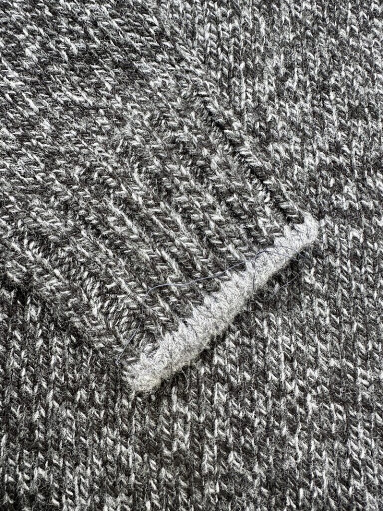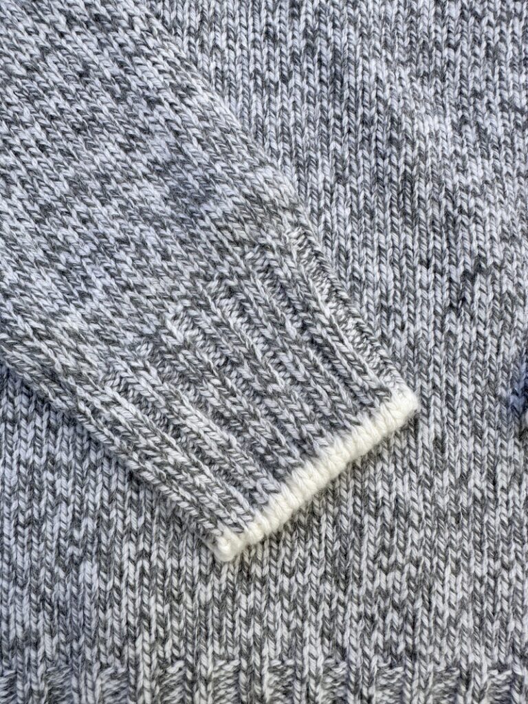 The final knitting of the cuffs is also middle gray,