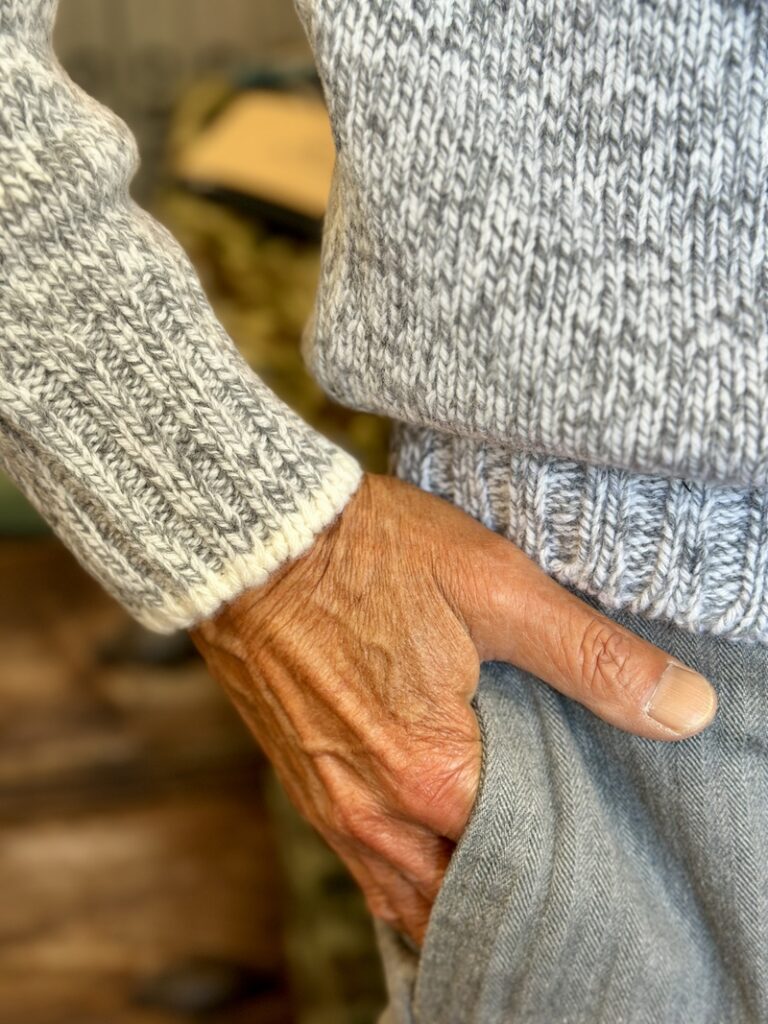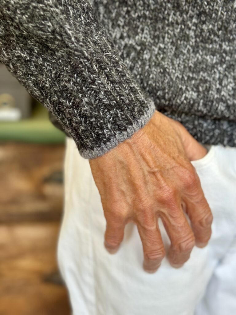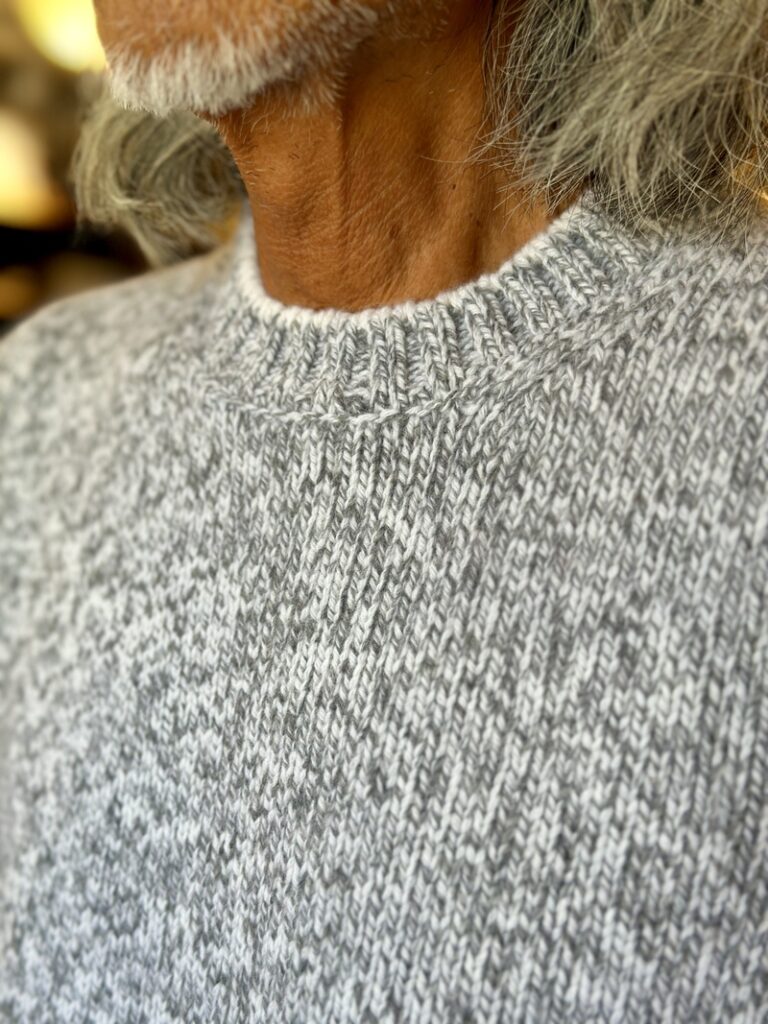 僕自身、ソリッドのスウェーターよりミックスに編み立てましたメランジェのスウェーターが好きなので