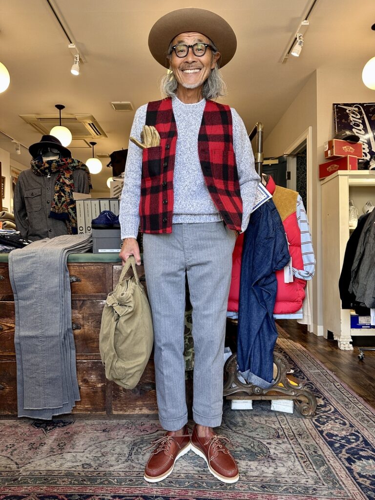 こんな感じで僕の大好きなFILSONのマッキノーベストなどにも良くお似合いになりますね!