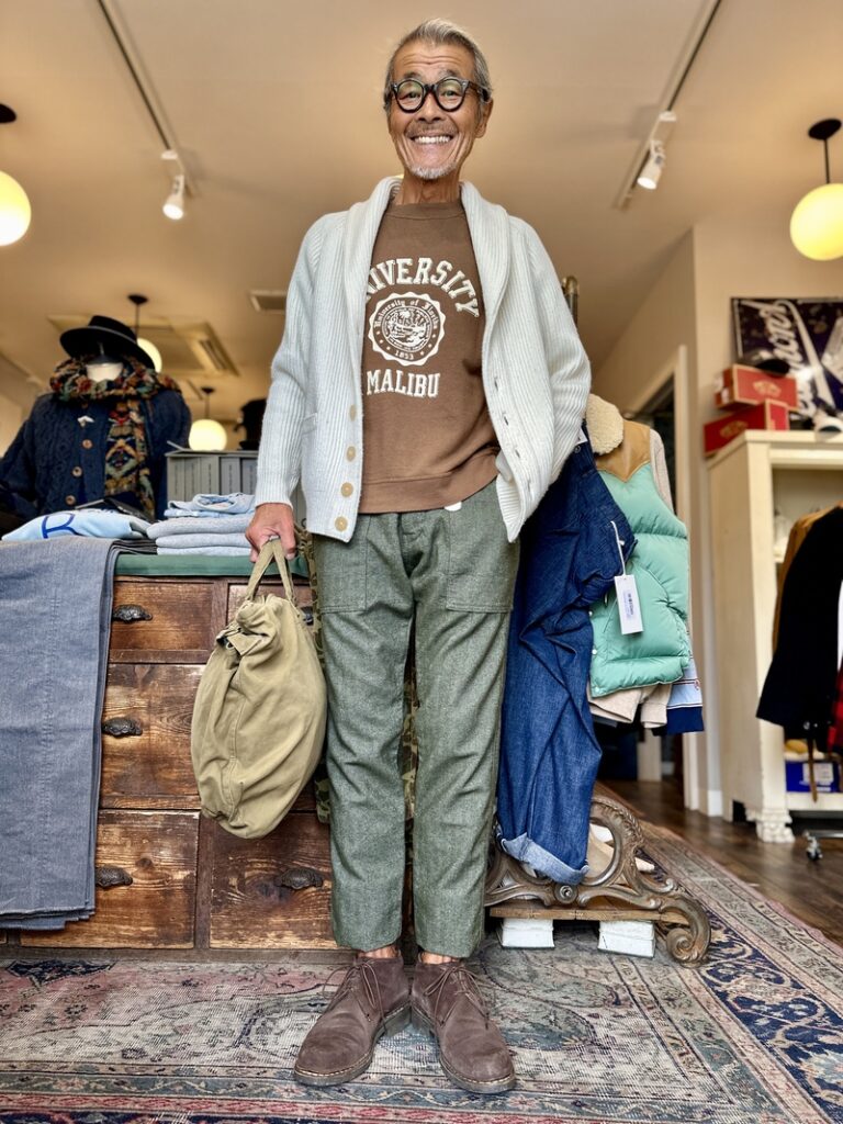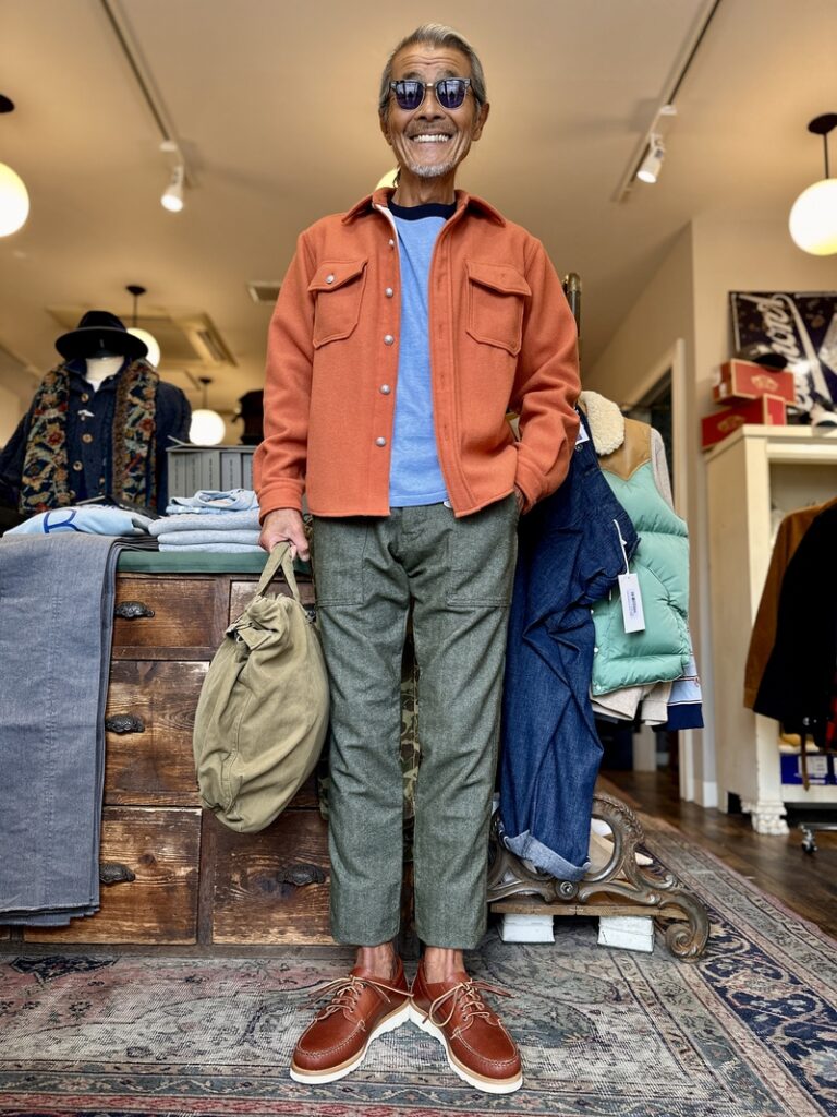 シアトルのCRESCENT DOWN WORKSにLAでトレジャーハンティングしましたコットンツィードで別注