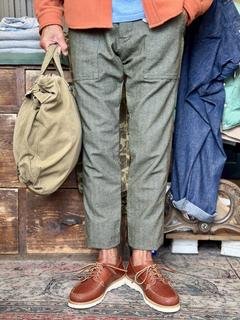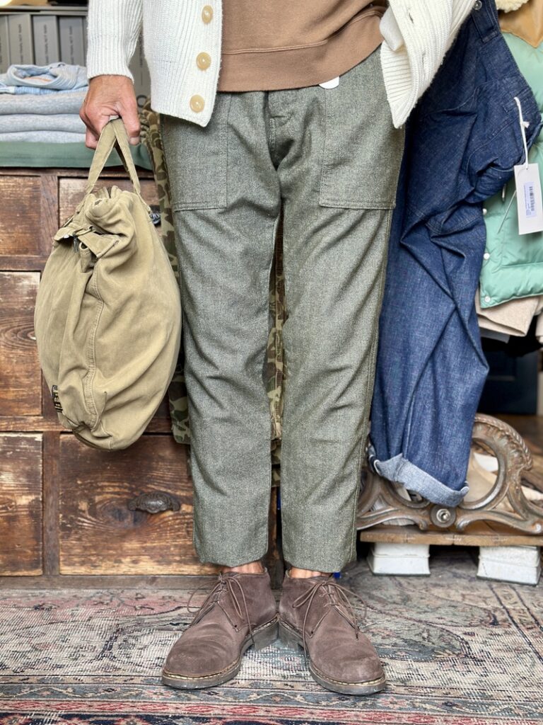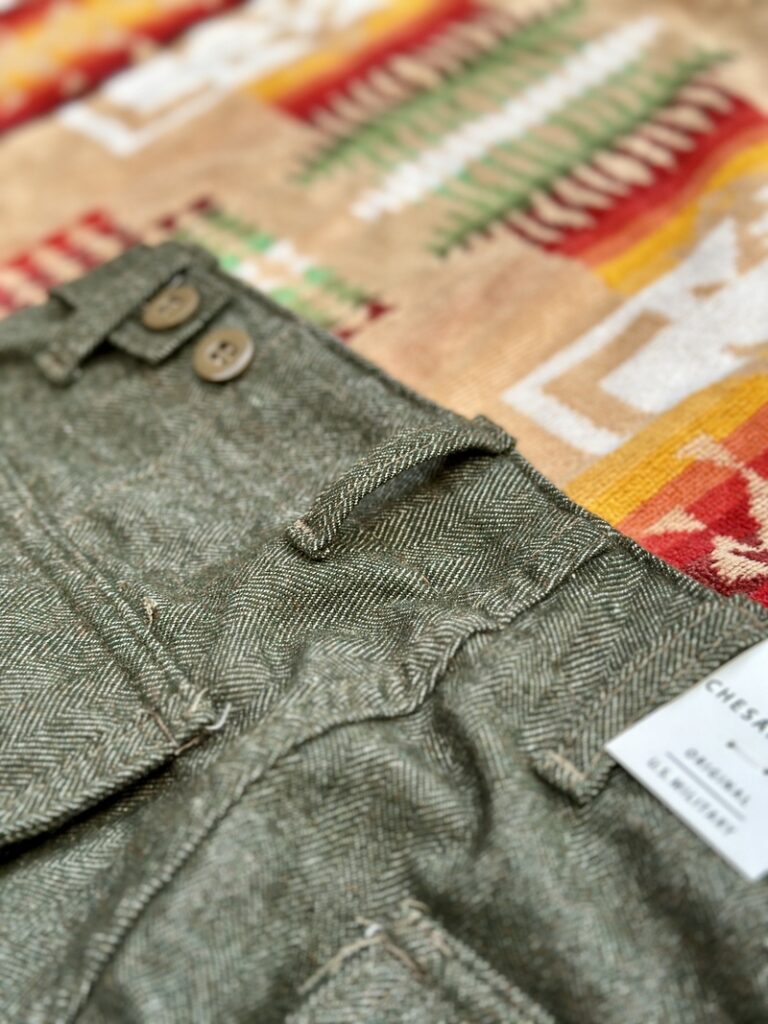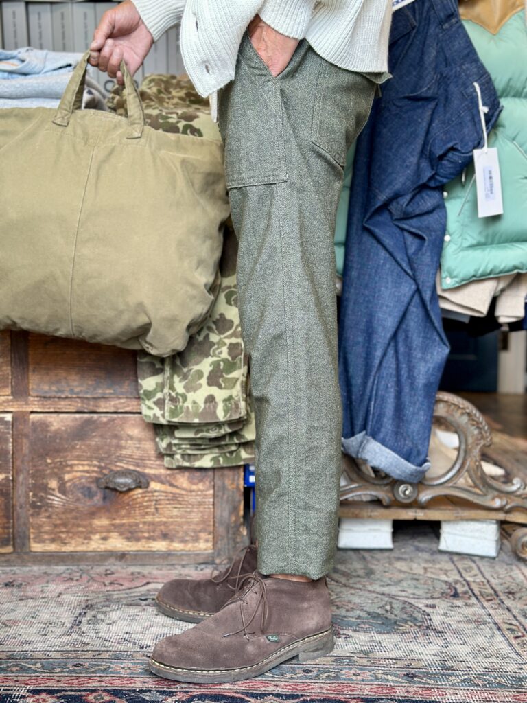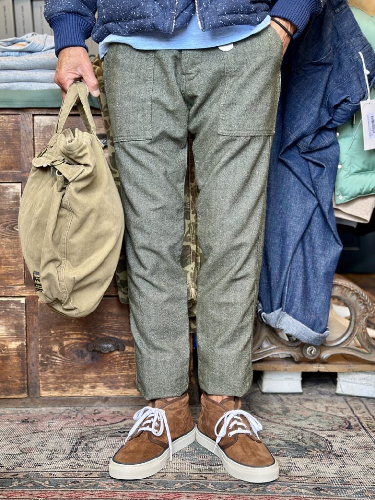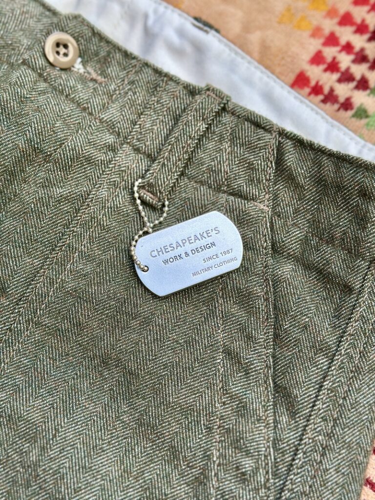 We’re introducing the classic baker pants from CHESAPEAKES, a brand founded by an Italian in Rome, specializing in military and workwear based on American traditional fashion.