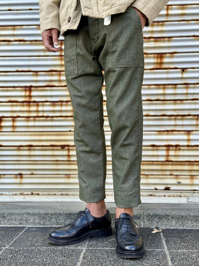 適度な皺感も演出されておりますし、ウール素材の暖かさも味わえると一粒で2度美味しいパンツに