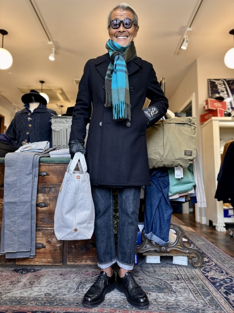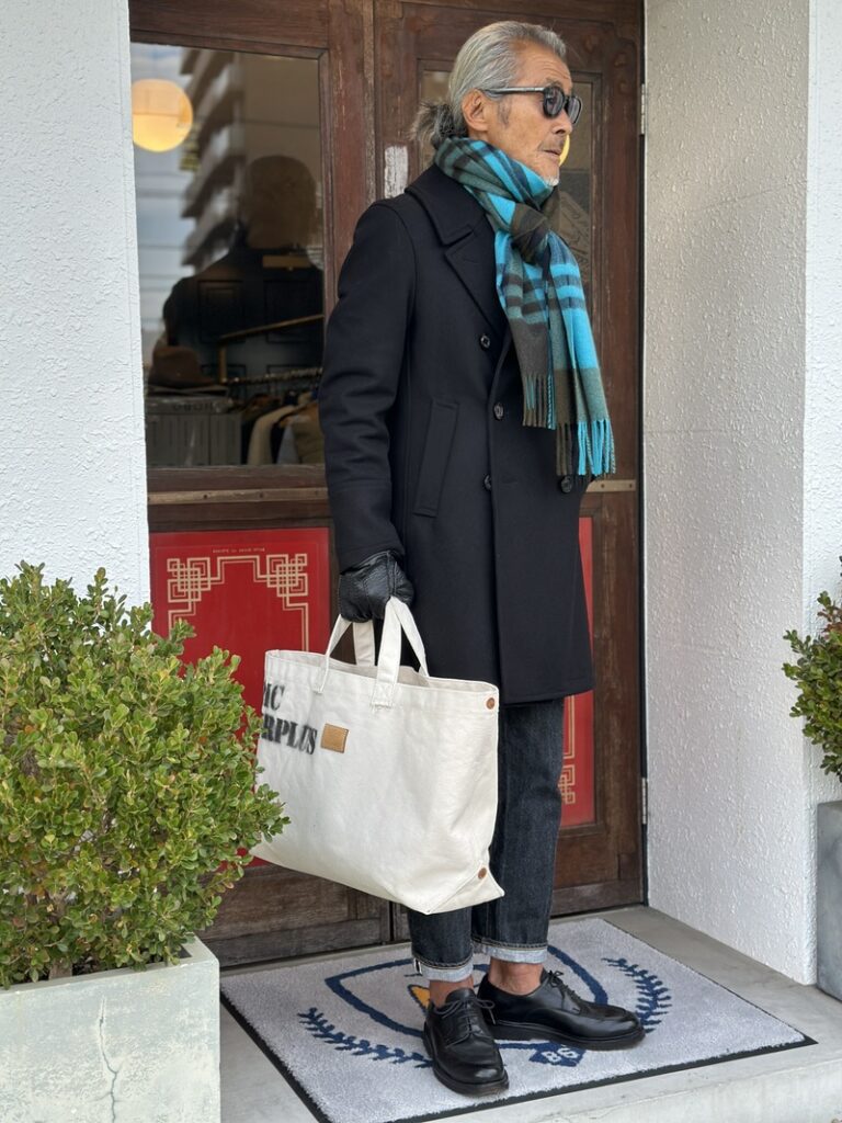 ブラックのメルトンを纏ったPコートにRESOLUTE GB 710などよくお似合いになりますね!