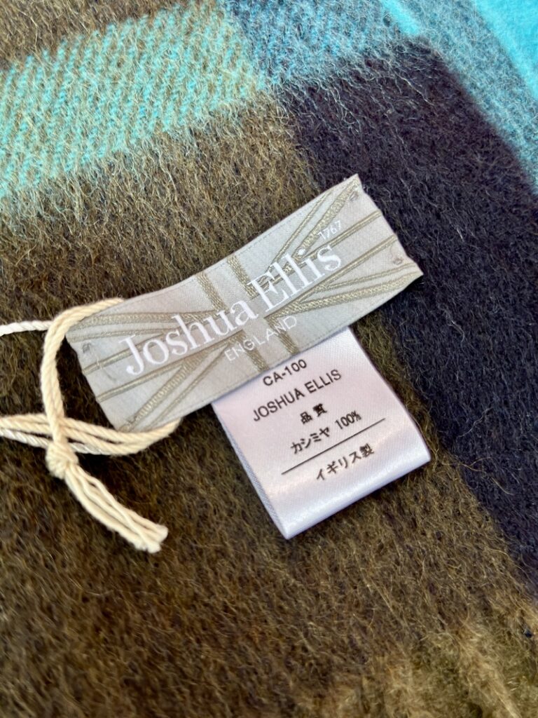 ジョシュアエリスのストールの特徴は、コートなどの重厚な生地を作るかのようにカシミアを贅沢に使用