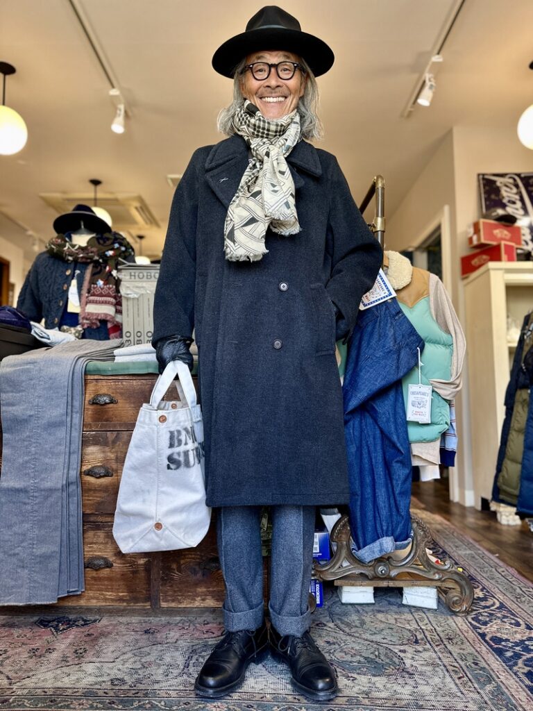 ナポリのペトリロに英国のマラリウスツィードで別注しましたロングPコートなどにもご覧の通り