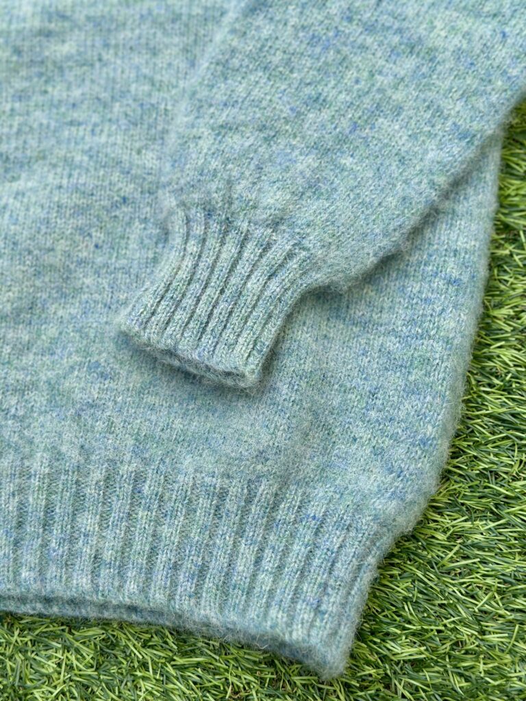 At first glance, it might look like sax blue, but upon closer inspection, it’s a richly expressive melange knit!