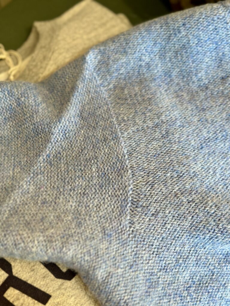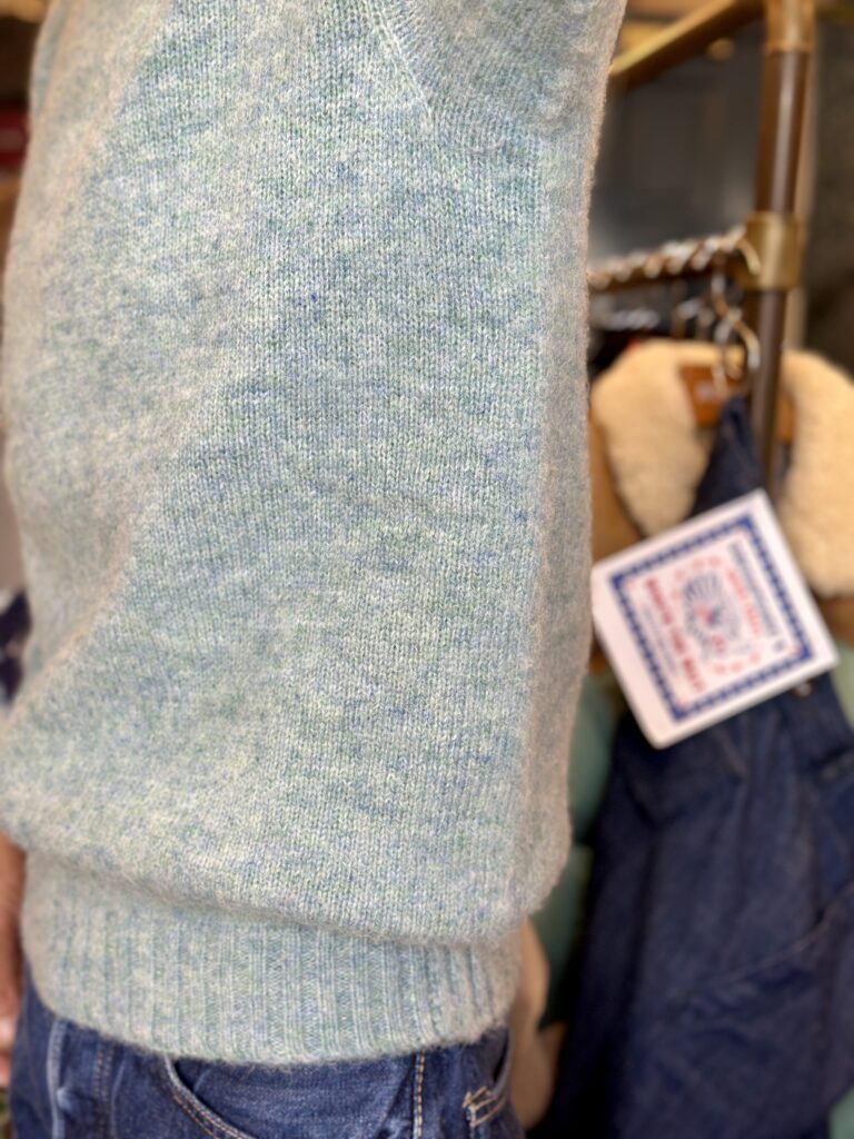 パッと見はサックスブルーかな?と思わせますがよくよく見ますと表情豊かなメランジェニット!