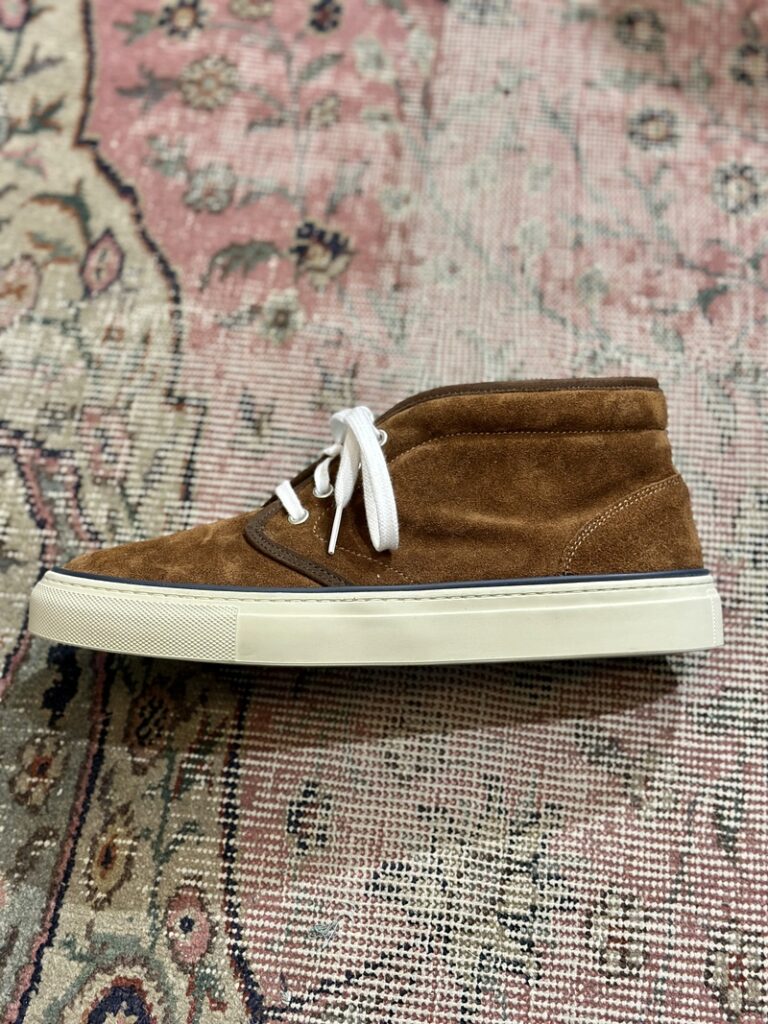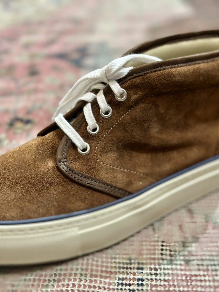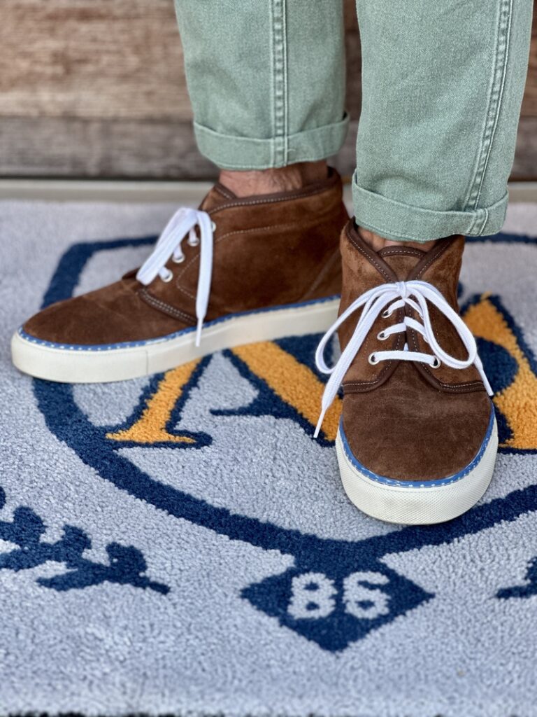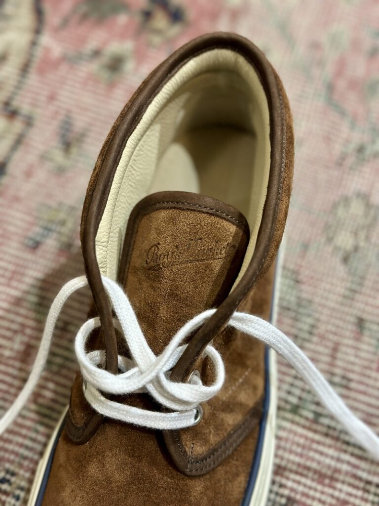 イタリアの高級なスウェードをアッパーに載せましてアメリカ臭いムードを演出しました