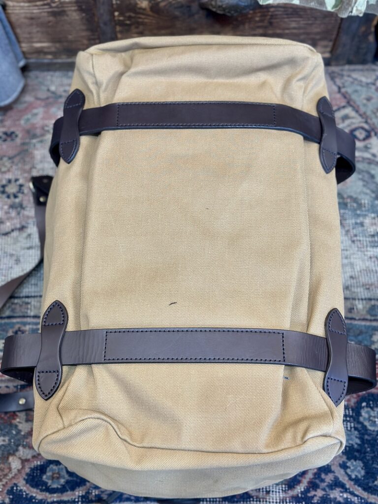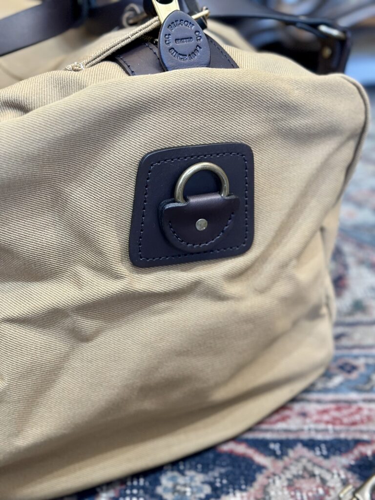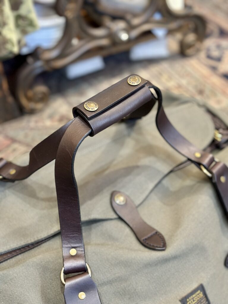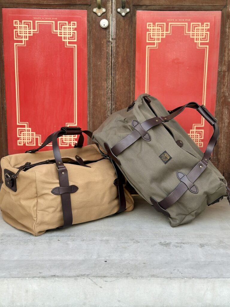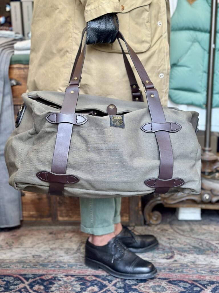 此のFILSONのダッフルバッグも素材は22オンスのラギッドツィルにレザーはブライドルレザーとどちらも