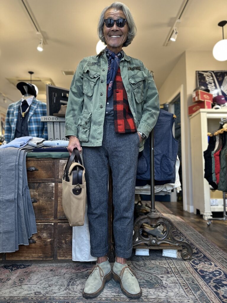 アウターはLAのSHANANAMILのヴィンテージのジャングルファティーグなどお勧めですね。