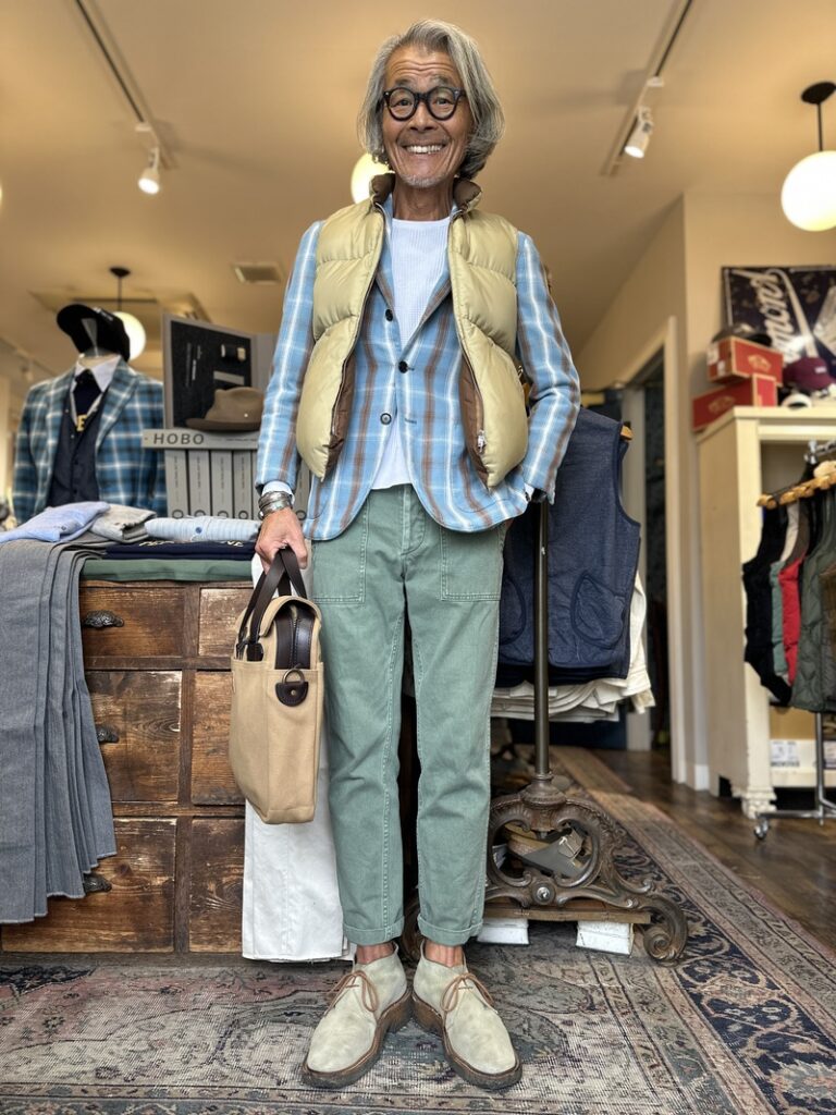 こんなカジュアルなジャケットスタイルにもデザートブーツは良くお似合いになりますね。