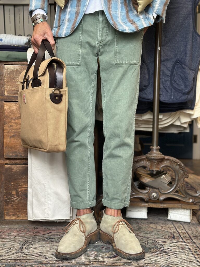 ミリタリークロスとガウチョスウェードはこれ以上無い組み合わせかと。