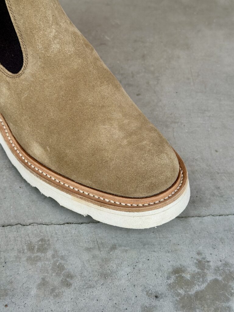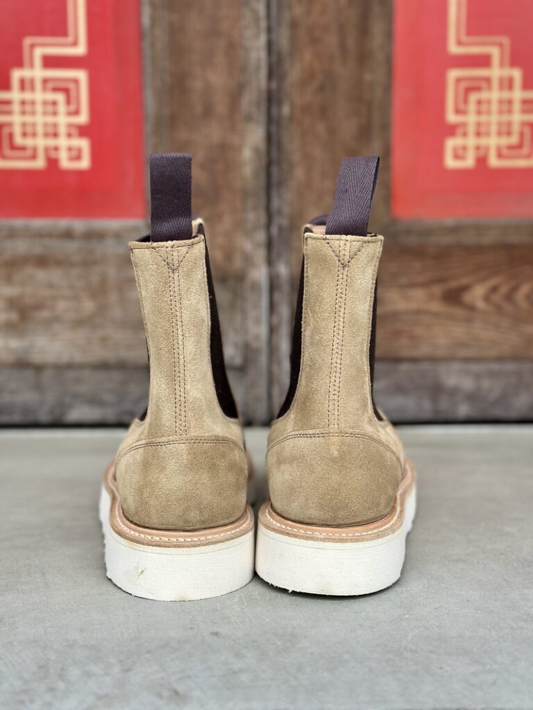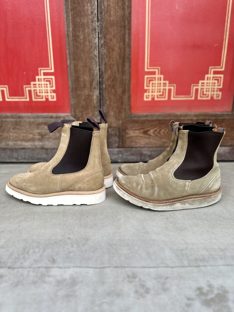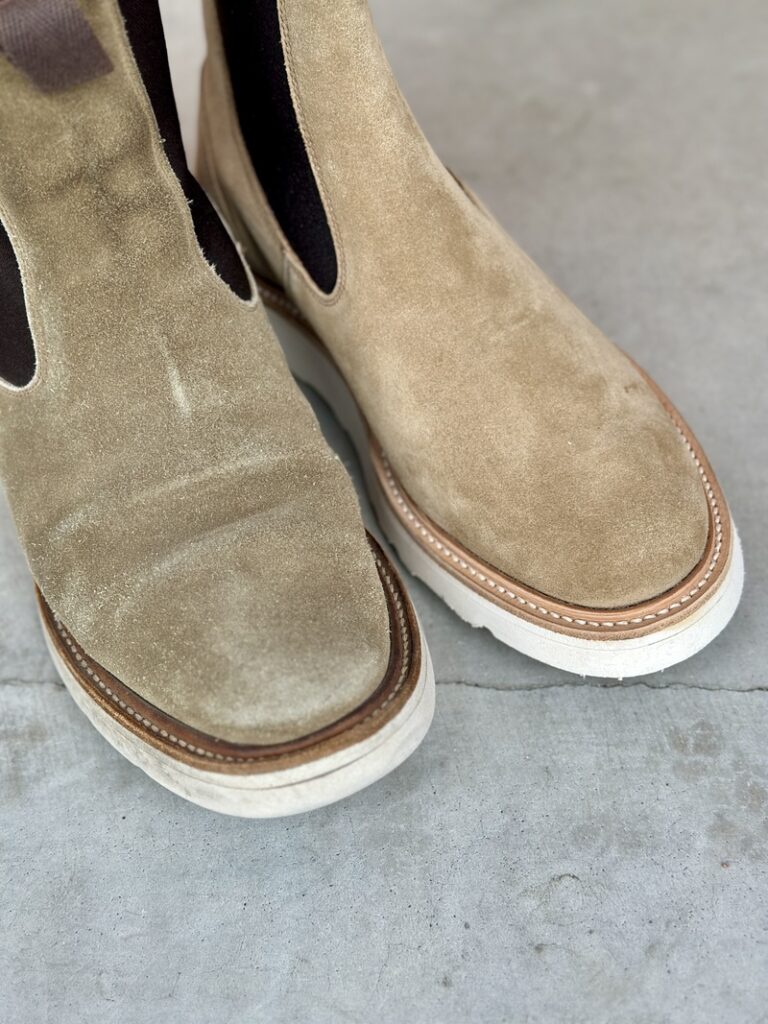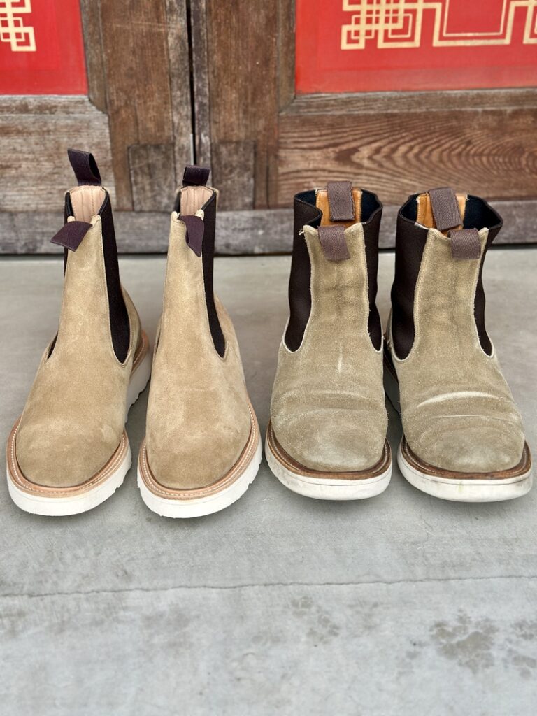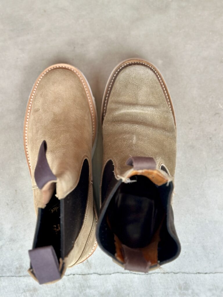 向かって左が10年ほど丁稚が愛用しましたサイドゴアブーツになりまして、右が新品になります。
