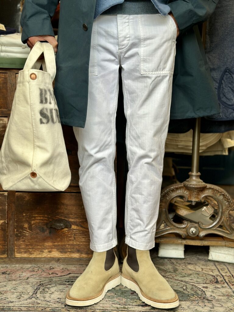 コットンヘリンボーンで企画しましたボーイズ別注ベーカーパンツなどにも如何でしょう!