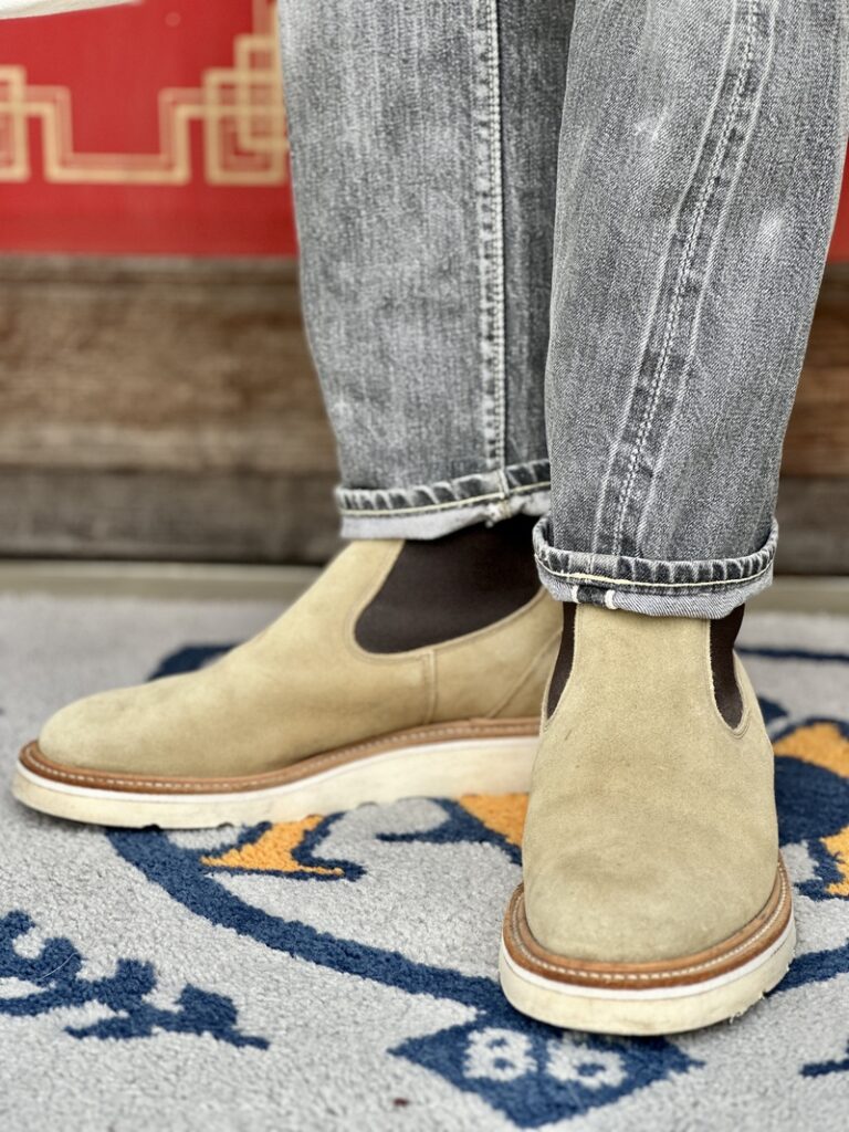 ラギッドなヘビーデューティースタイルでも此のサイドゴアブーツをコーディネィトに加えますと