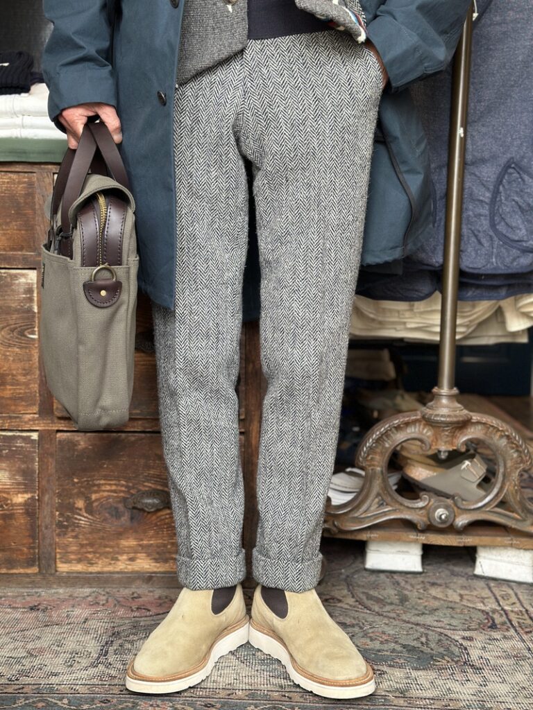 此のブーツとハリスツィード素材で英国カントリーなムードも漂わせますね。