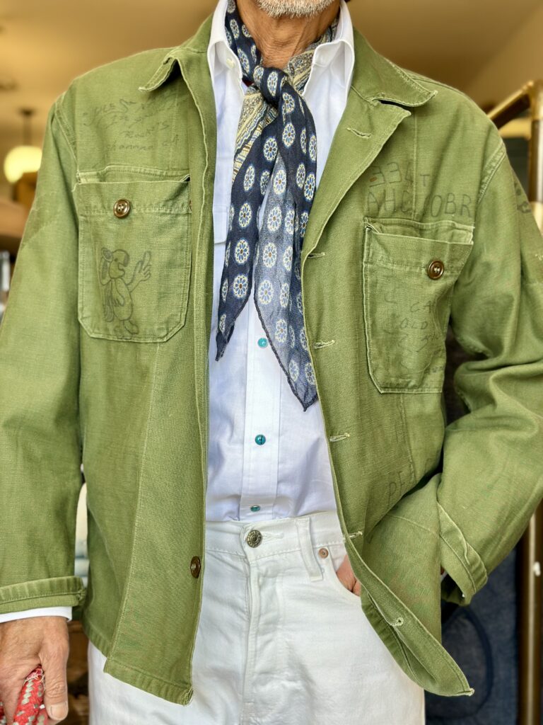 ヴィンテージのミリタリーシャツにウェスタンシャツなどの装いはイタリア男が最も好む着熟しかと!